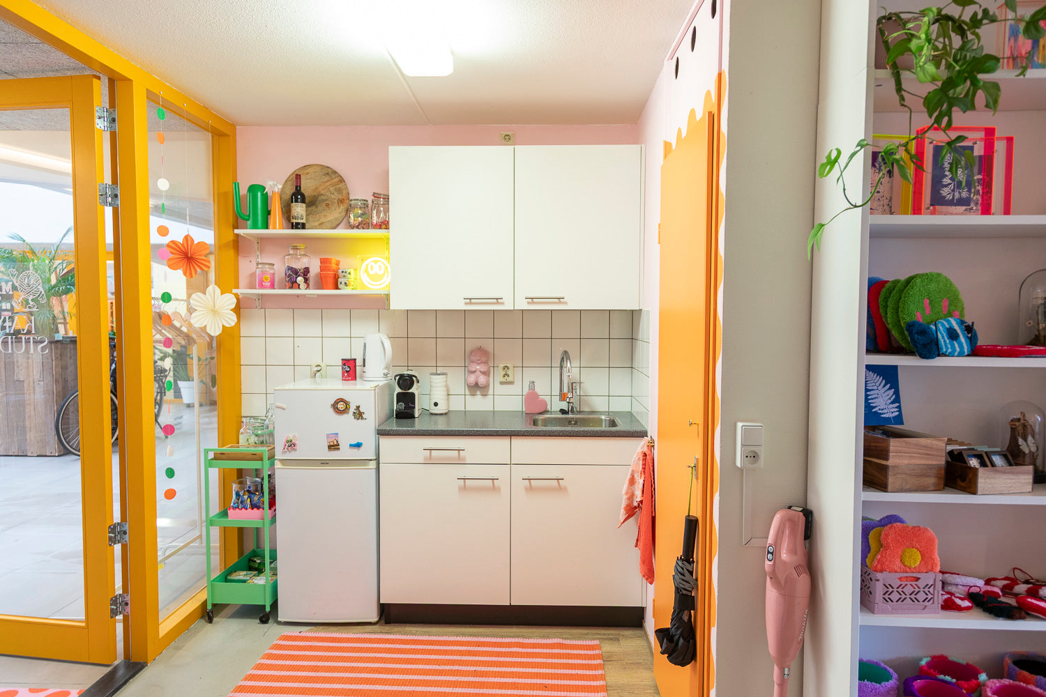 MAAK. atelier ligt centraal in Den Haag en is een inspirerende, dopamine ruimte waar creativiteit vanzelf op gang komt. Het atelier beschikt over een ruimte met ruime werktafel, een volledig ingerichte keuken en een badkamer. Aan de grote tafel is plaats voor zes tot acht personen, waardoor het een ideale plek is voor workshops, meetings of gezamenlijke creatieve sessies.