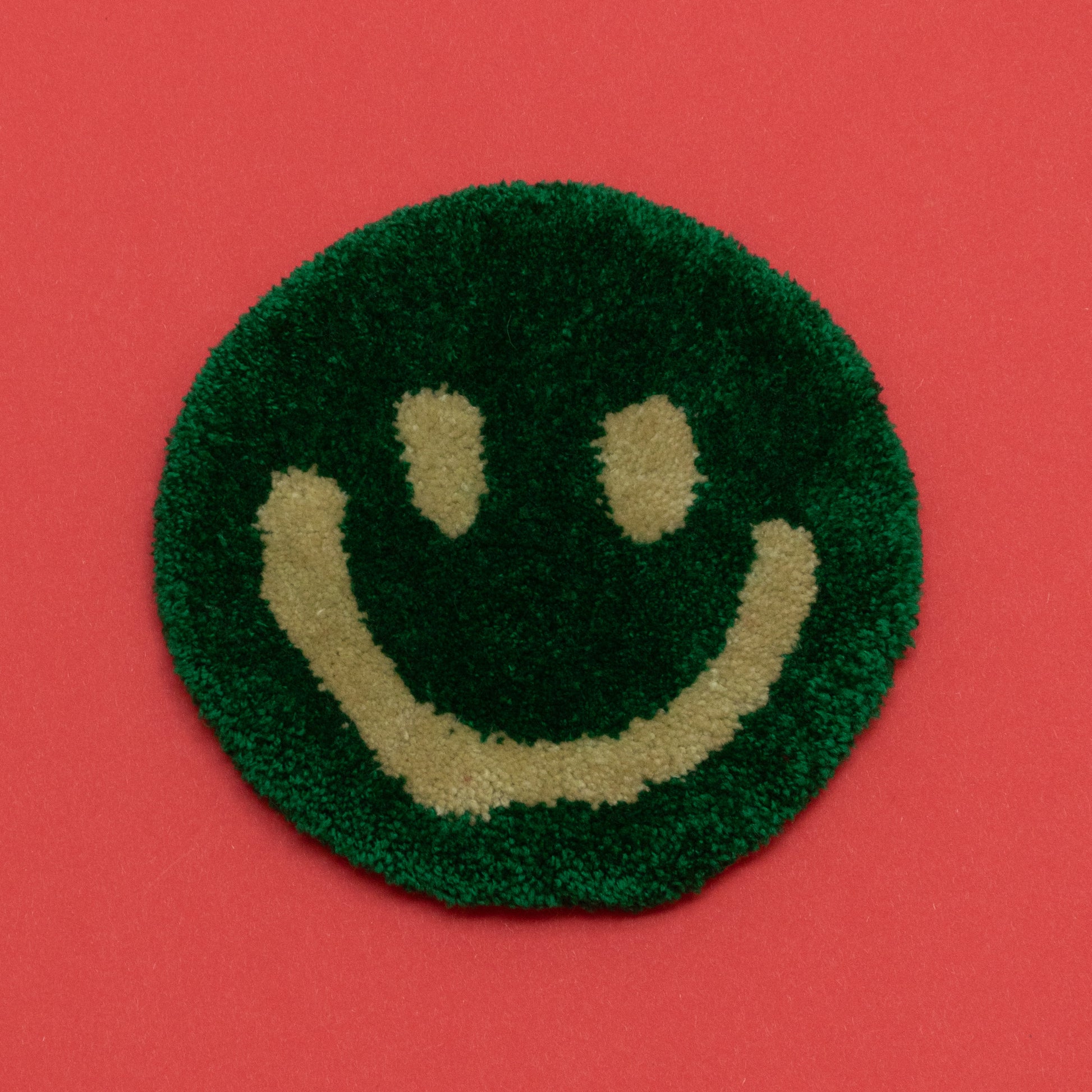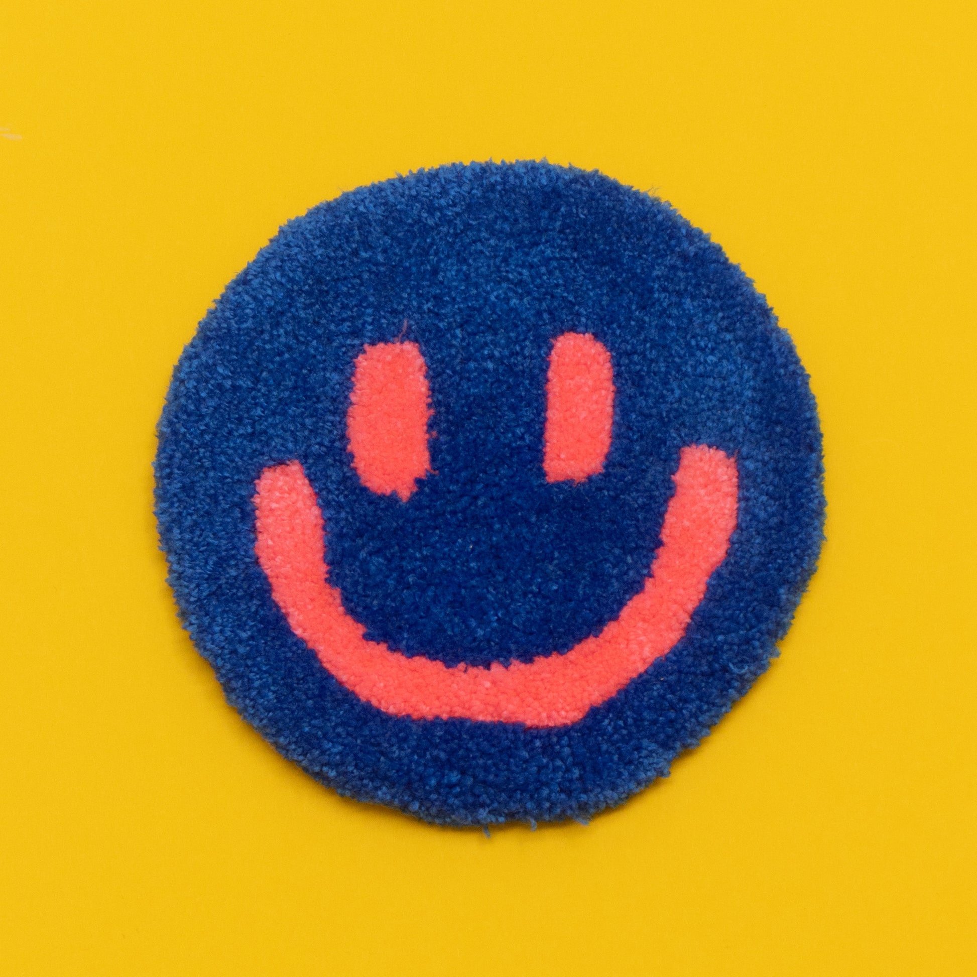 Uniek, handgemaakt kleedje dat met zorg en precisie is getuft. De smiley is gemaakt van 100% premium acrylgaren en voorzien van een haakje zodat het opgehangen kan worden, met een diameter van ongeveer 20 cm. Omdat elk stuk met de hand wordt gemaakt, kan het eindresultaat licht afwijken van de foto.