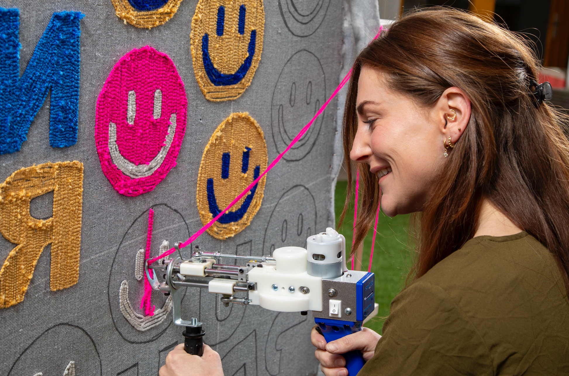 - Aan de slag met tuften: Het leukste deel! Je gaat zelf tuften en ziet jouw ontwerp tot leven komen.